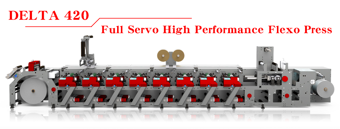 • DELTA 420 Flexo printing press is a kind of printing equipment which is developed by our company on the basis of absorbing foreign advanced technology experience and combining with our core technology. The press is for shipping label, adhesive material, film and other materials. The whole machine adopts three servo synchronization control, uses LED UV curing, high precision and low pollution. This machine has advanced functions, simple operation, low production cost, and can be customized according tocustomer needs.